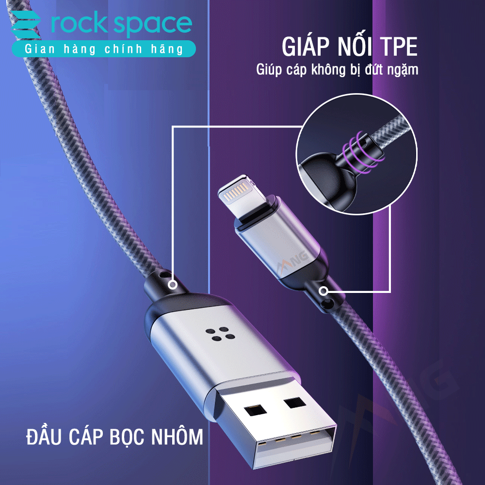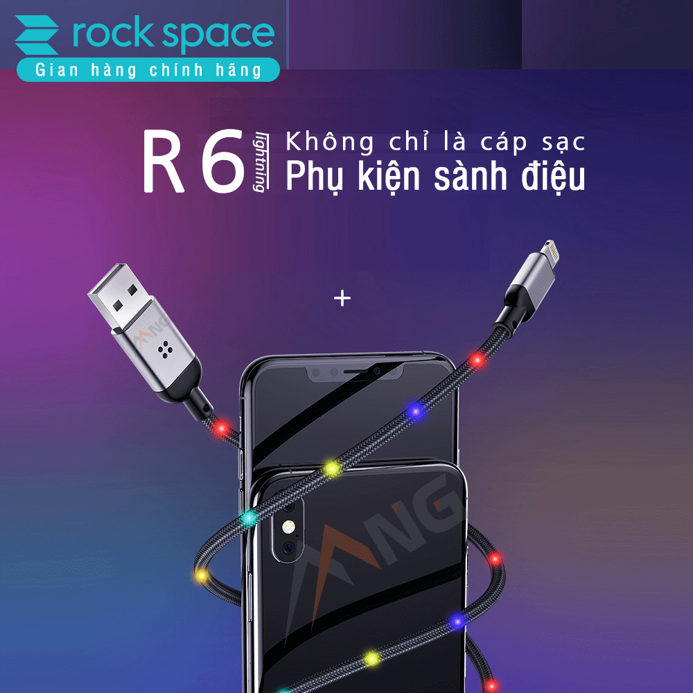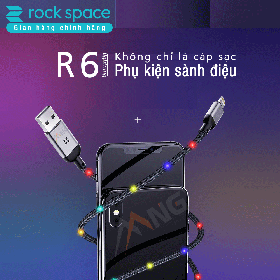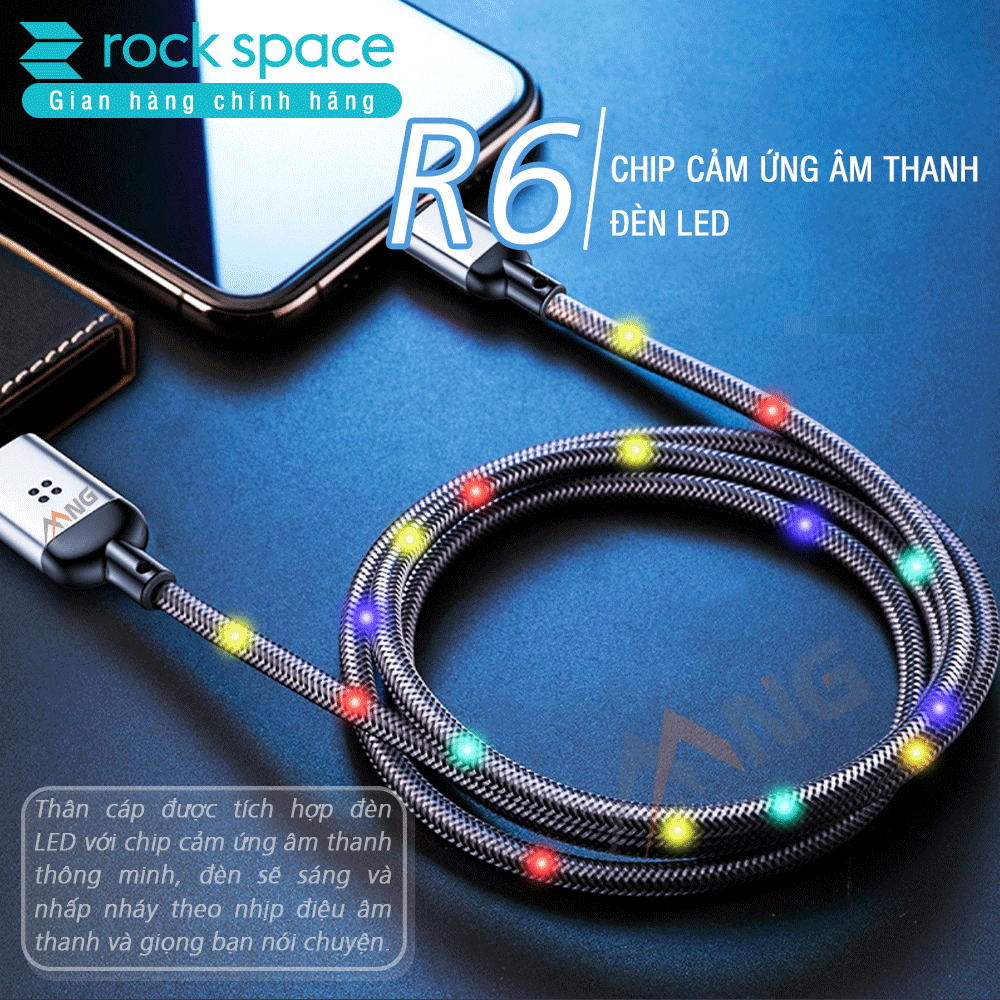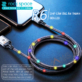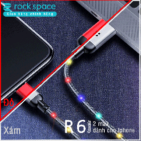 Cáp Rock R6 dây dù đầu kim loại tích hợp đèn led cảm ứng âm thanh chuẩn Lightning dành cho iphone.