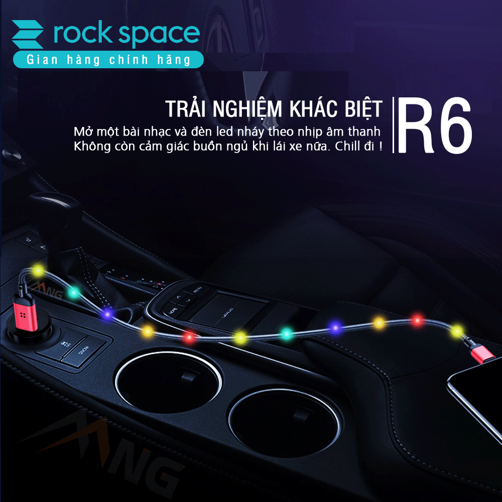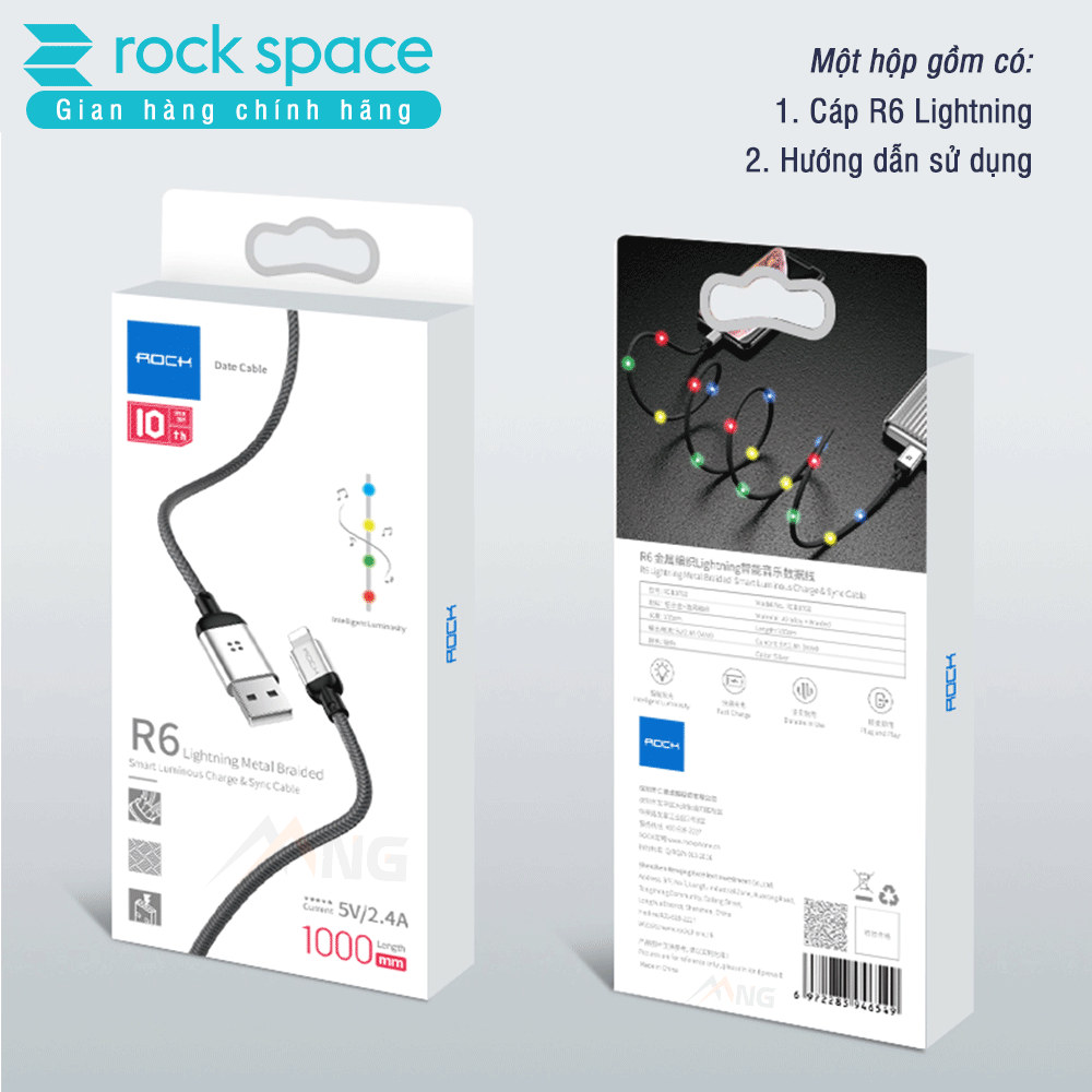 Cáp Rock R6 dây dù đầu kim loại tích hợp đèn led cảm ứng âm thanh chuẩn Lightning dành cho iphone. - Được hoàn hiện bằng vật liệu cao cấp dây dù bện, nhôm, nhựa TPE