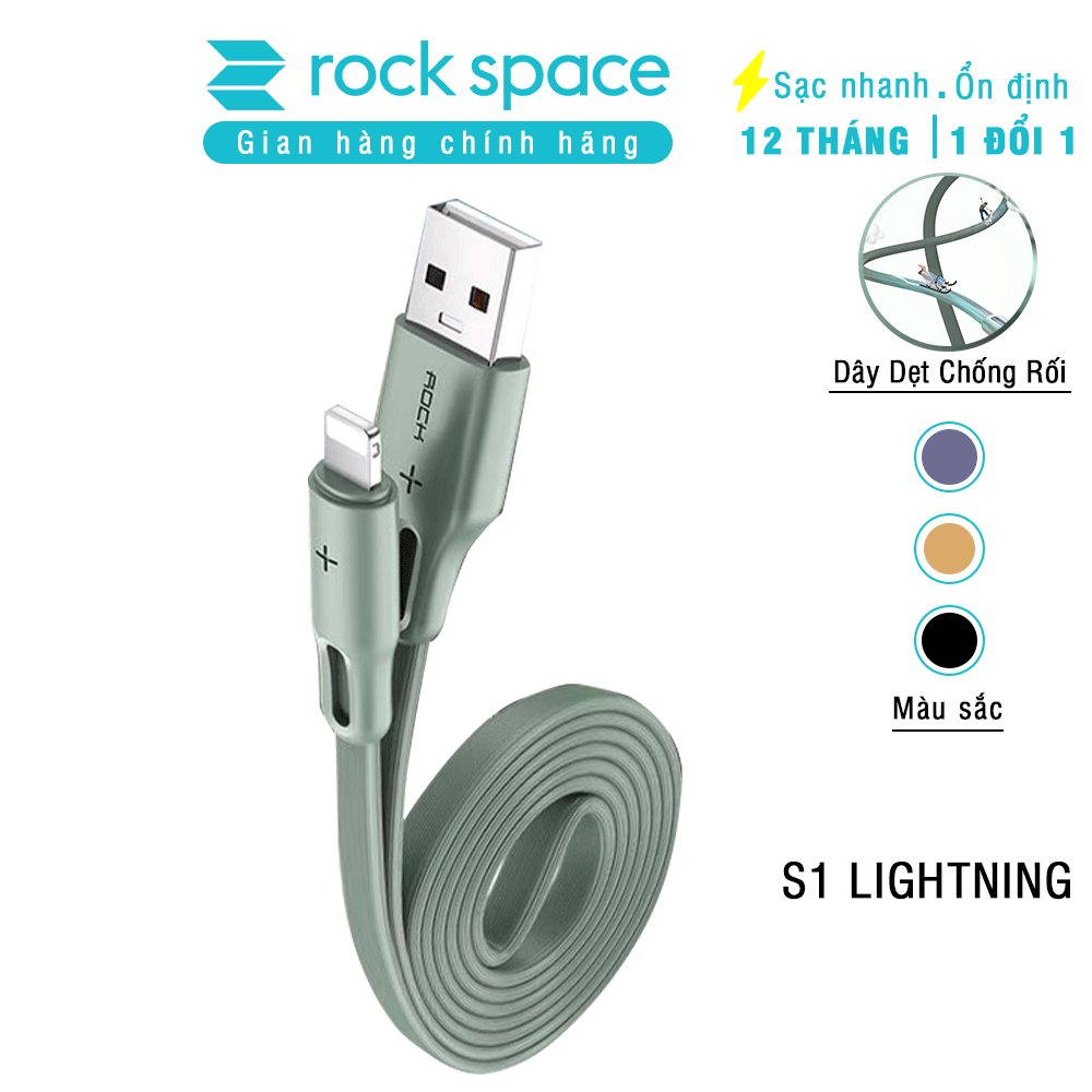 Cáp sạc Rockspace S1 Linghting cho iphoneĐơn vị tính : Cái Tình trạng : Mới Thông tinCáp chính hãng Rockspace S1 dành cho iPhone ⚡ Dây TPE dẹt siêu bền, chống dối chống xoắn giúp sợi cáp bền chắc và rất thuận tiện trong sử dụng, cất gọn bỏ túi mang đi không lo rối,xoắn gẫy ... Màu sắcTag : Cáp chính hãng Rockspace S1 dành cho iPhone ⚡ Dây TPE dẹt siêu bền, chống dối chống xoắn giúp sợi cáp bền chắc và rất thuận tiện trong sử dụng, cất gọn bỏ túi mang đi không lo rối,xoắn gẫy như các dòng cáp thông thường ⚡ Cổ cáp được thiết kế rất thông minh chống gẫy cổ cáp đây là lỗi rất hay gặp ở các dòng cáp tròn phổ thông ⚡ Độ dài 1m phù hợp với nhu cầu phổ thông