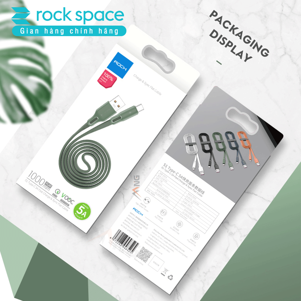 Cáp sạc Rockspace S1 type C cho điện thoại androindĐơn vị tính : Cái Tình trạng : Mới Thông tinCáp chính hãng Rockspace chuẩn type C tương thích cho các dòng điện thoại adroid như Samsung, Oppo, Huawei.. - Dây TPE dẹt siêu bền, chống dối chống xoắn. - Độ dài 1m phù hợp với nhu cầu phổ ... Màu sắcTag : Cáp chính hãng Rockspace chuẩn type C tương thích cho các dòng điện thoại adroid như Samsung, Oppo, Huawei.. - Dây TPE dẹt siêu bền, chống dối chống xoắn.