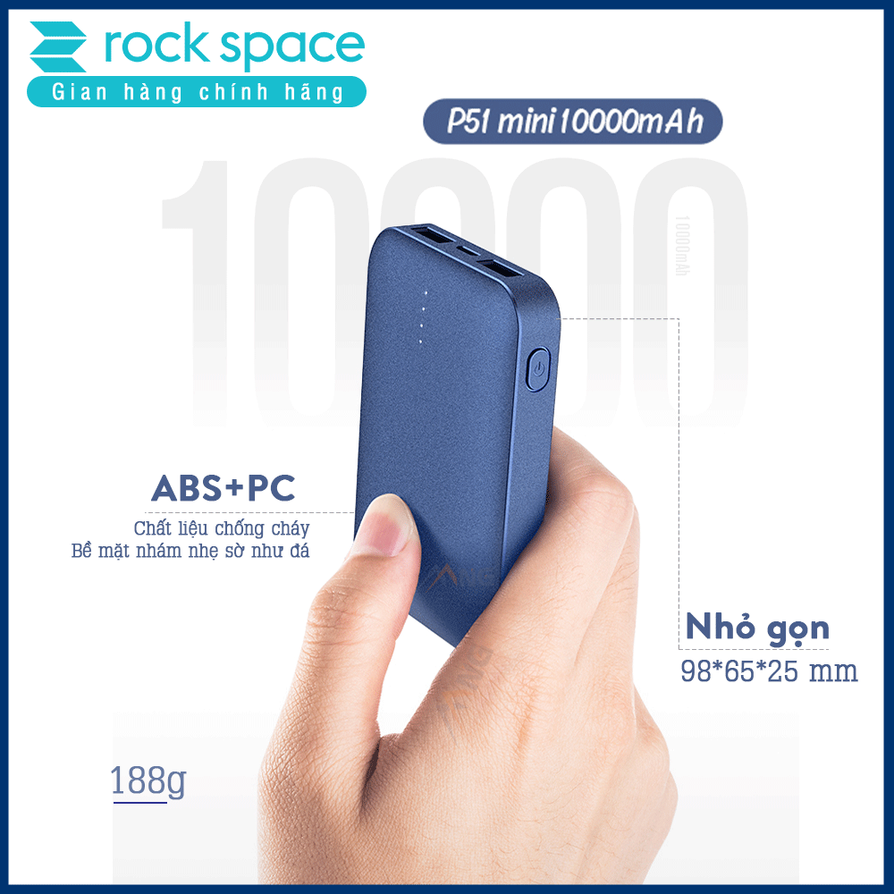 Pin dự phòng cao cấp Mini Rockspace P51 với dung lượng 10.000mAh trong thân hình siêu nhỏ gọn.