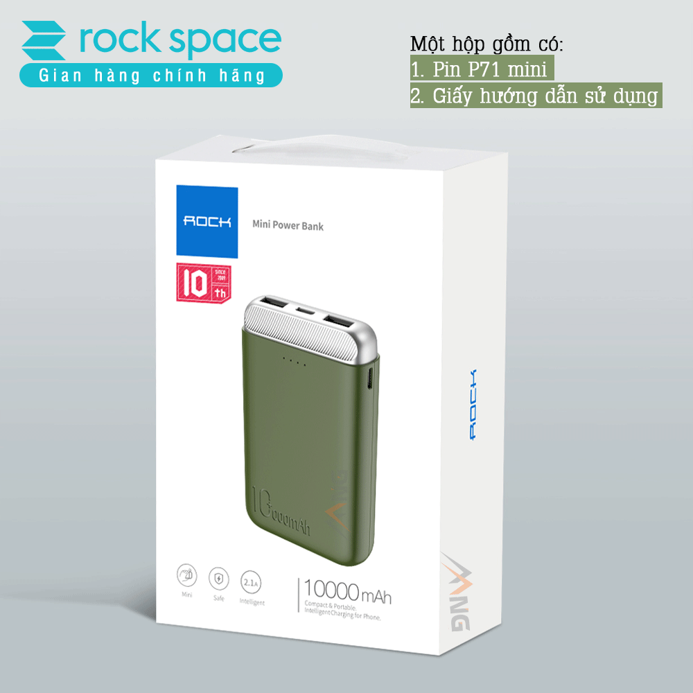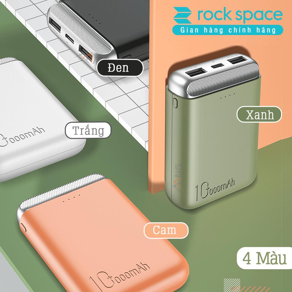 pin sạc dự phòng Rockspace P71 10.000mAhĐơn vị tính : Cái Tình trạng : Mới Thông tinSạc dự phòng 10.000mAh Rock space - Hàng chính hãng Thông tin sản phẩm: Model : P71 Mini Power Bank * Kích thước nhỏ gọn, công suất lớn * Màu sắc tươi sáng khác nhau có sẵn * 3 cổng ... Màu sắcTag : Sạc dự phòng 10.000mAh Rock space - Hàng chính hãng Thông tin sản phẩm: Model : P71 Mini Power Bank * Kích thước nhỏ gọn, công suất lớn * Màu sắc tươi sáng khác nhau có sẵn * 3 cổng đầu ra, đầu ra hiện tại 3A - Chât liệu -Material: nhựa chống cháy Fireproof ABS+PC; - Cổng sạc vào Micro USB Input:5V2A Type-C Input:5V-2A,cổng ra USB-A Output:5V-2.1A;3.Battery Capacity: 3.7V 10000mAh(37Wh),Rated Capacity: 5V 6200mAh;4.Charging Time: 5 -5.5 hours;5.Unit Dimension: 94mm*63.5mm*22.5mm;6. Weight:194g Màu sắc: Đen, trắng, vàng cam. Sản phẩm chính hãng bảo hành 12 tháng 1 đổi 1